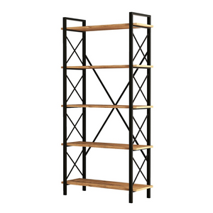 Libreria di design in metallo con 5 ripiani in legno e neri